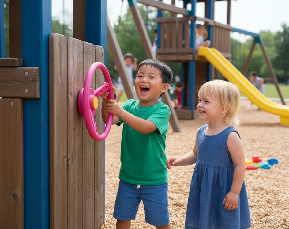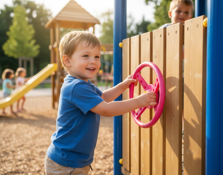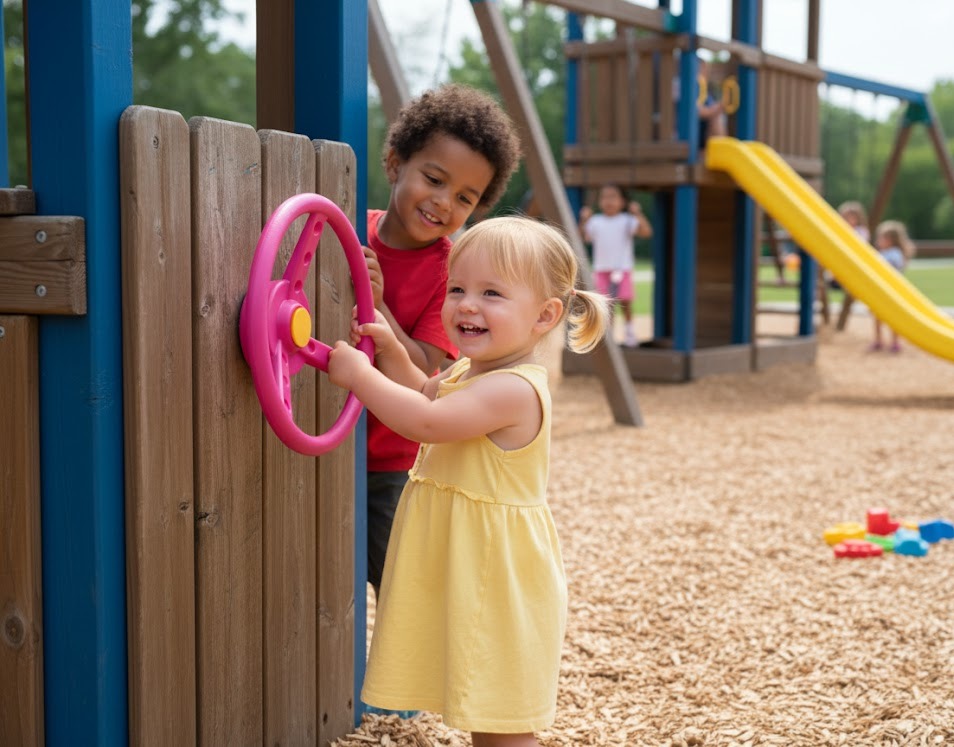 2 Handgriffe + Lenkrad + Fernrohr Zubehörset Sparset Spielturm Set Zubehör Rosa