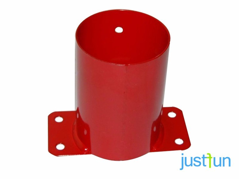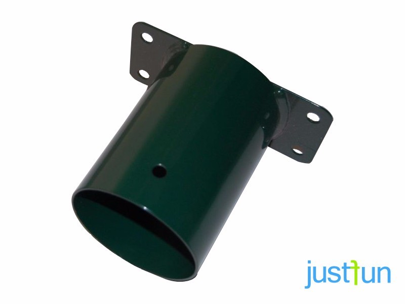 Wandverbinder für ein Rundholz 100 mm für Schaukeln. Sie sichern und stabilisieren Holzkonstruktionen. Zwei Schrauben verhindern das Verschieben beim Schaukeln. An eine Hauswand oder einen Spielturm montiert, nimmt die Rohröffnung des Verbinders den Querbalken des Schaukelgestells auf. Kennlinie des Produkts: Technische Angaben: